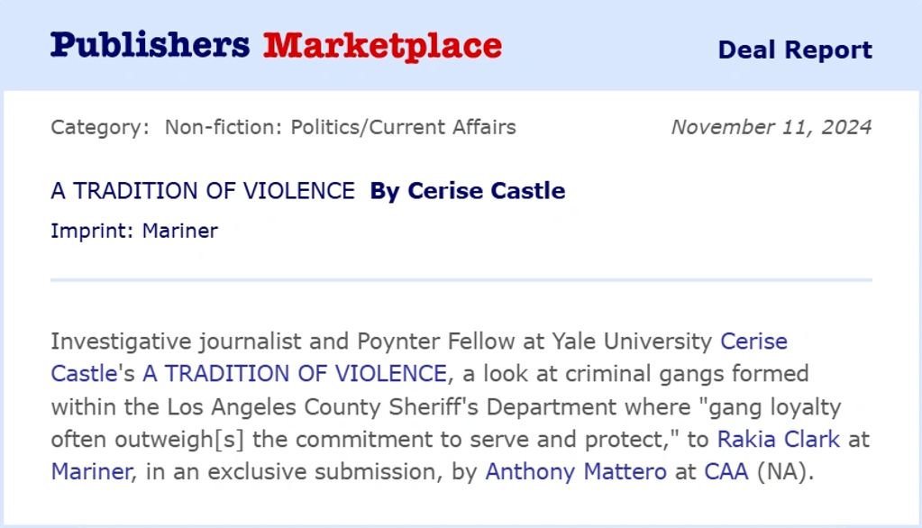 Cerise Castle Wins American Mosaic Journalism Prize for Exposing LA Sheriff’s Gangs